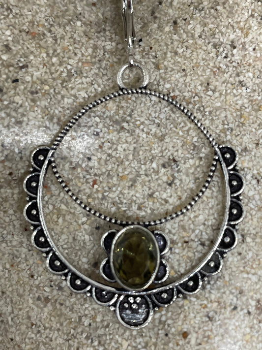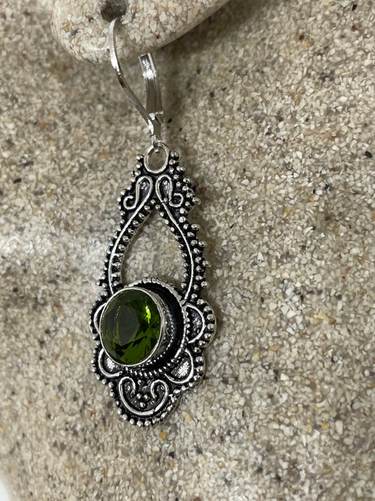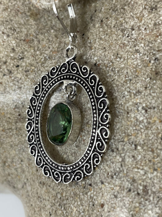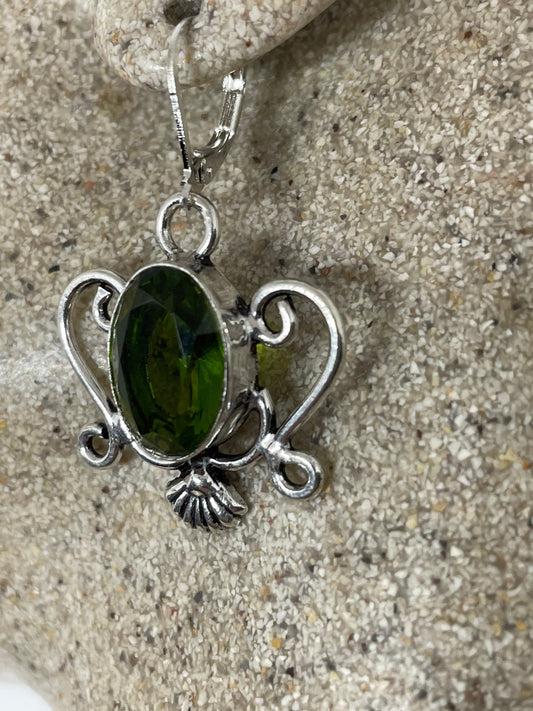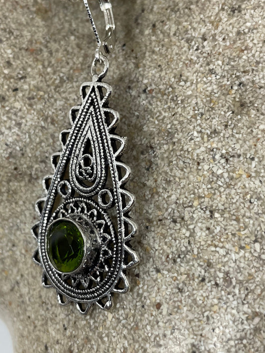Antique Vintage Green Peridot Silver Dangle Earrings