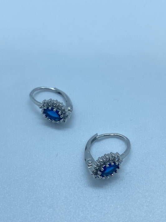 Vintage Blue Iolite Earrings 925 Sterling Silver Dangle
