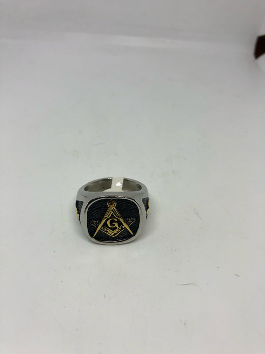 Vintage Gothic Silver Stainless Steel Free Mason G Mens Ring