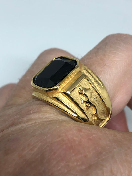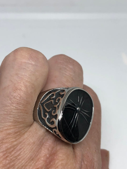 Vintage Black Onyx Stainless Steel Men's Ring