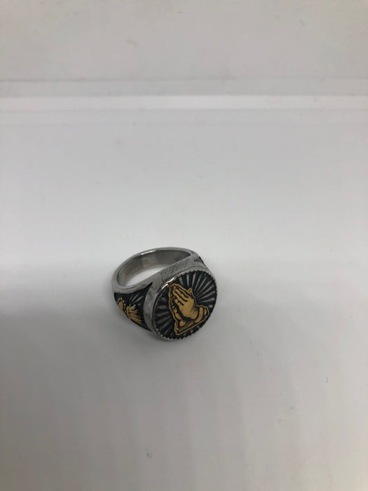 Vintage Gothic Silver Stainless Steel praying Hands sacred Heart Mens Ring