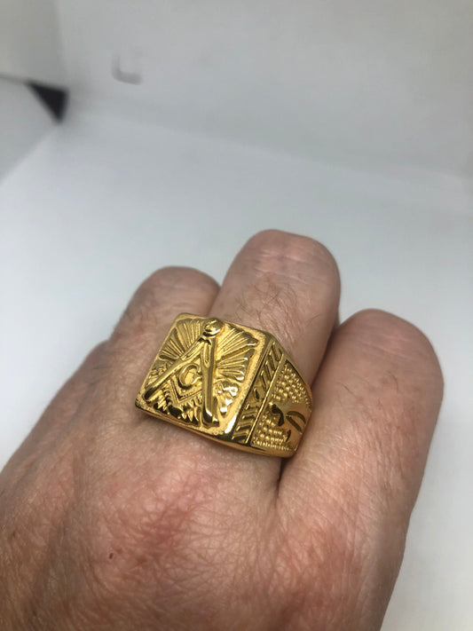 Vintage Gothic Golden Stainless Steel Free Mason G Mens Ring