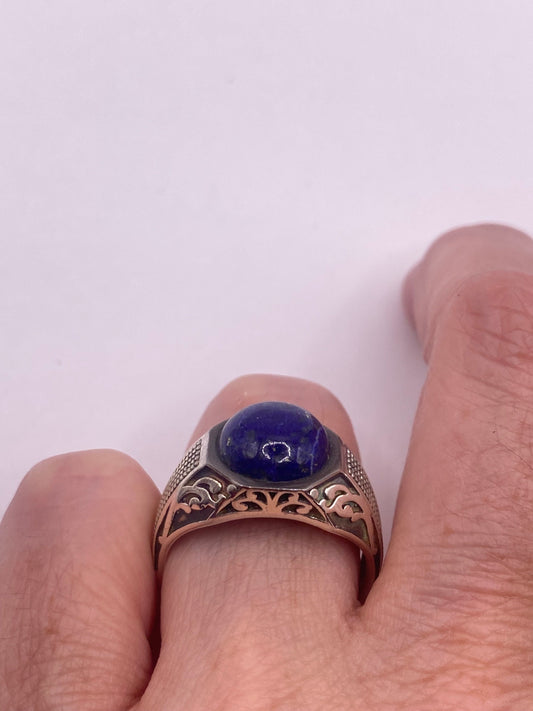 Vintage Blue Lapis Lazuli 925 Sterling Silver Men’s Ring