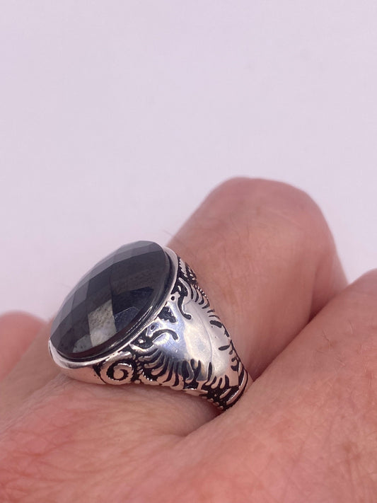 Vintage Hematite 925 Sterling Silver Men's Ring