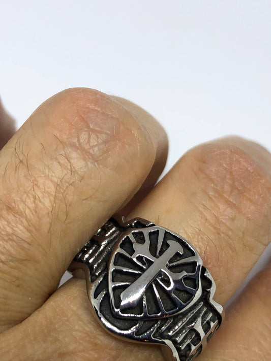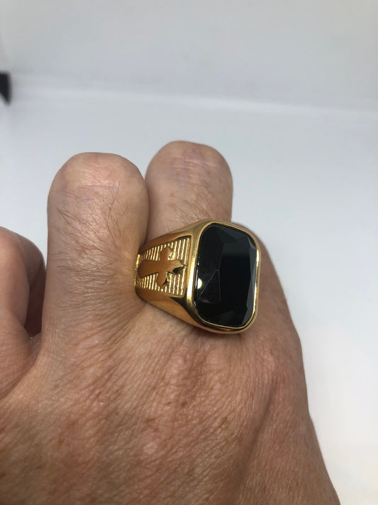 Vintage Golden Black Onyx Gothic Cross Stainless Steel Mens Ring
