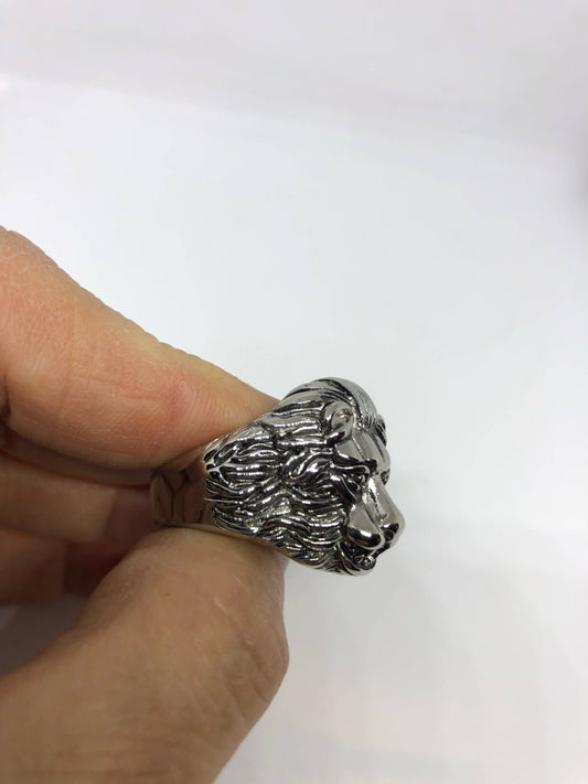 Vintage Gothic Silver Stainless Steel Lion Head Mens Ring