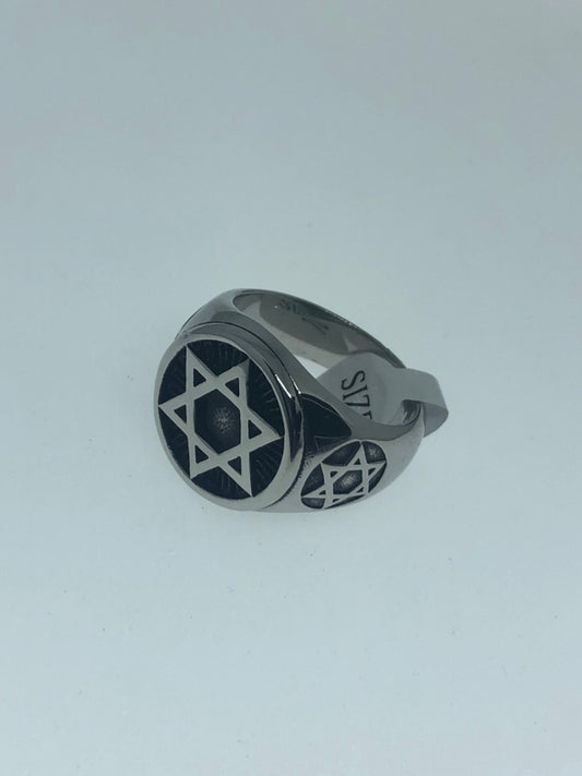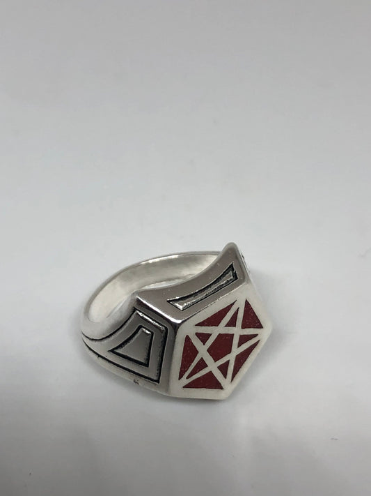 Vintage Gothic Red Coral Pentacle Star Mens Ring