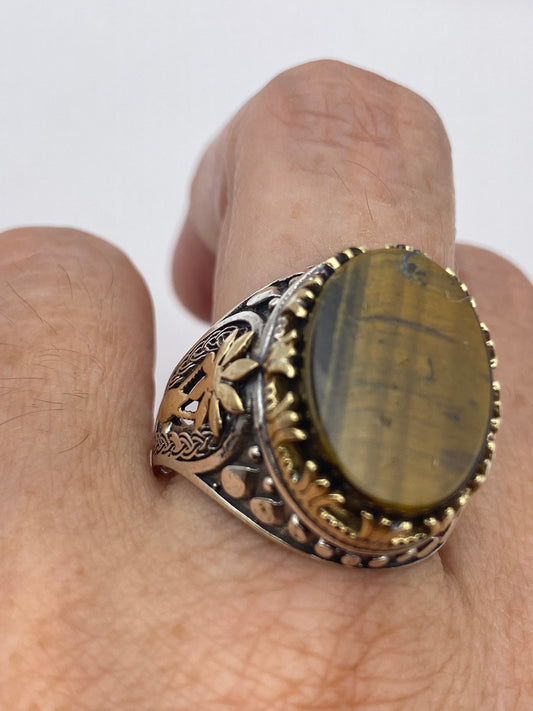 Vintage Tigers Eye Mens Ring in 925 Sterling Silver Persian Genuine