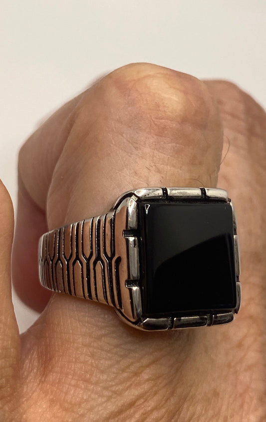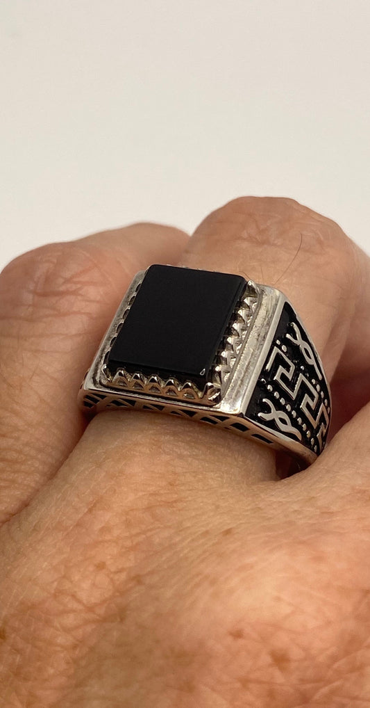 Vintage Black Onyx Mens Ring in 925 Sterling Silver