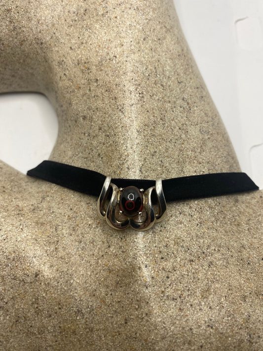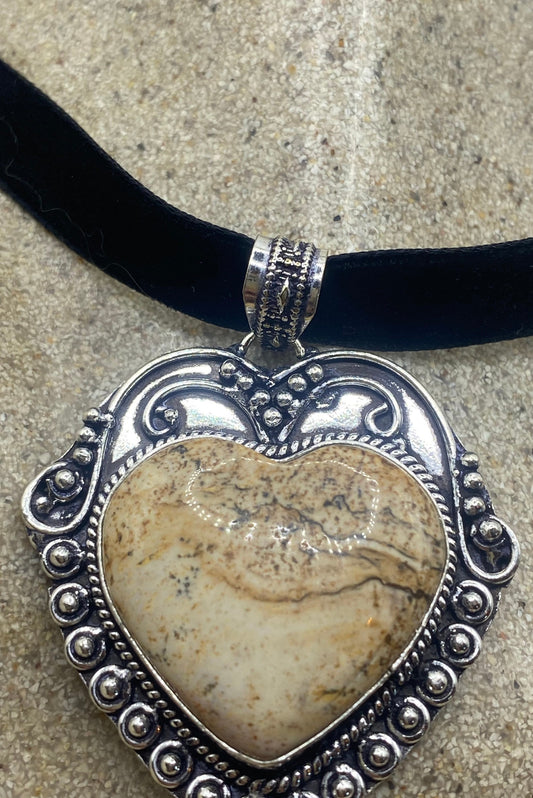 Vintage Heart Brown Picture Agate Jasper Choker Necklace