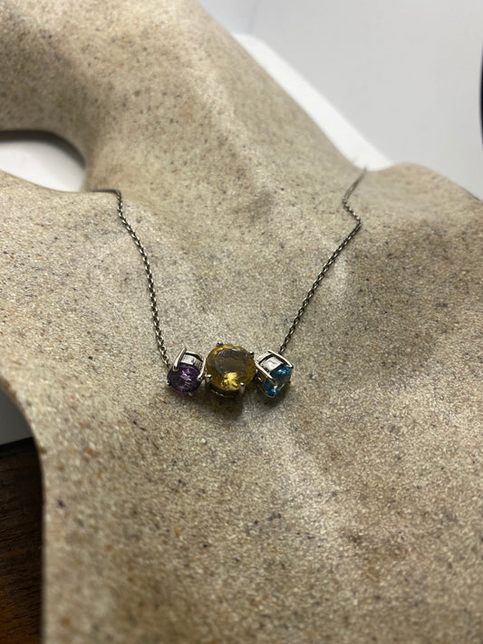 Vintage 925 Sterling Silver Mixed Gemstone Necklace