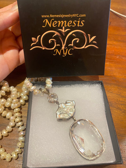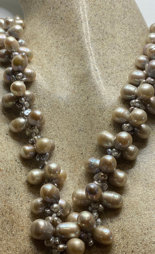 Vintage Hand Knotted White Topaz Pearl Necklace 36 inch