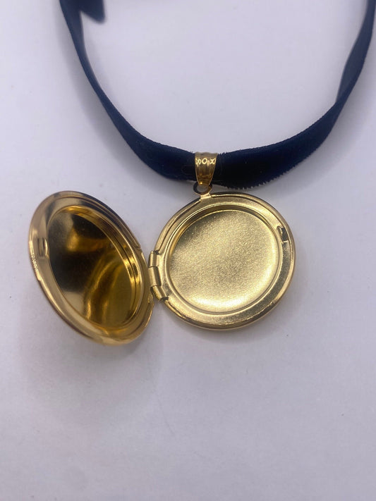 Vintage Gold Locket |Round Photo Charm Stainless Steel Deco Choker Necklace