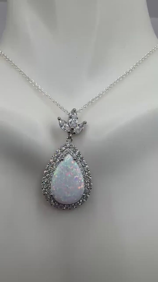Vintage White Opal Choker 925 Sterling Silver Pendant Necklace