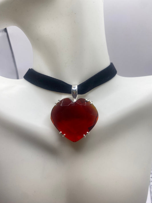 Vintage Heart Antique Red Ruby Glass Choker Necklace