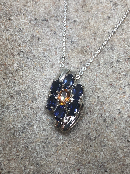 Vintage Blue Sapphire Citrine Heart Choker Antique 925 Sterling Silver Necklace