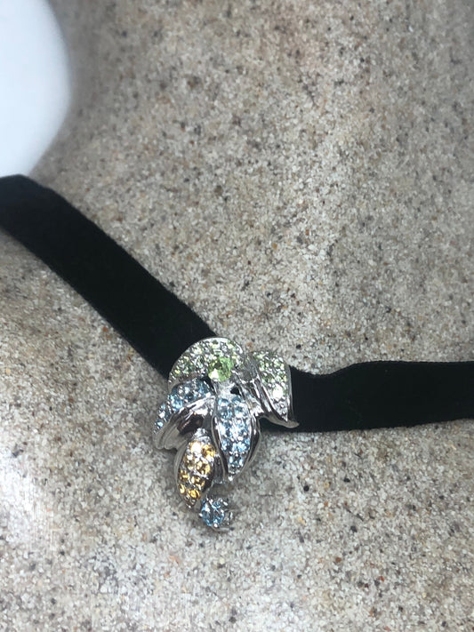 Vintage Tourmaline Choker 925 Sterling Silver Mixed Gemstone Antique Pendant Necklace