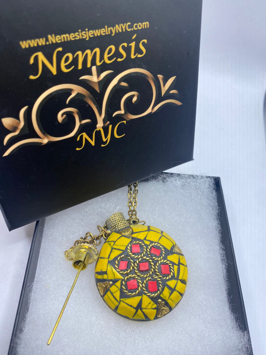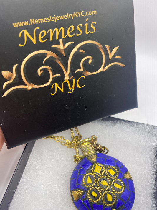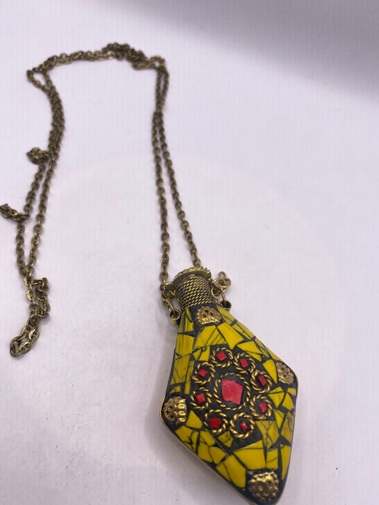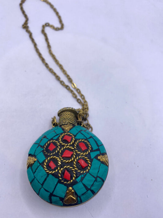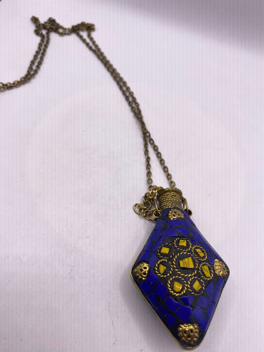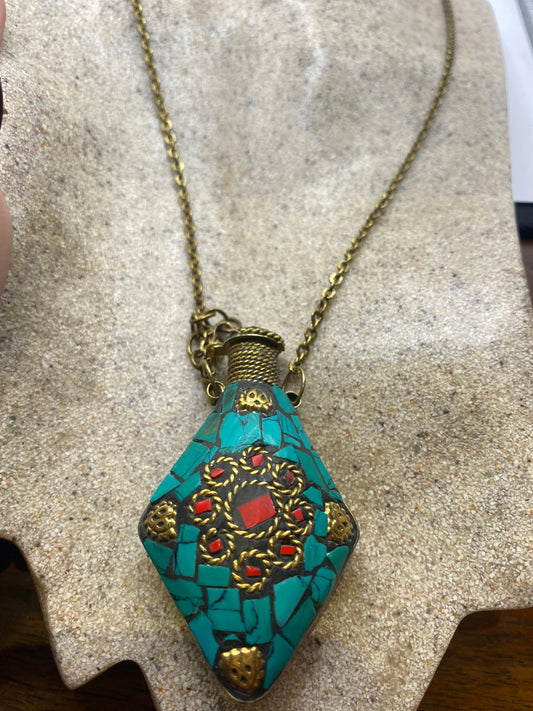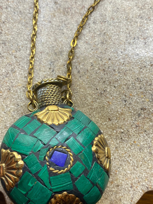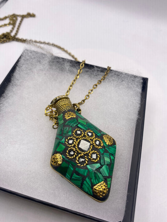 Vintage Perfume Oil Bottle mosaic Inlay Gemstone Pendant Necklace