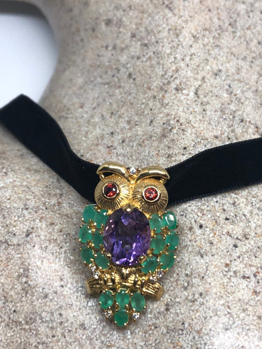 Vintage Handmade 925 Sterling Silver Genuine Garnet, Mixed Gemstone and Citrine Antique Pendant Necklace