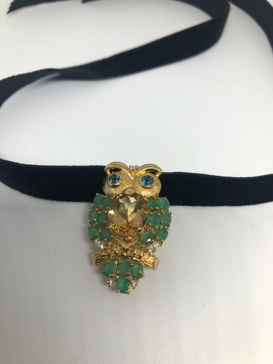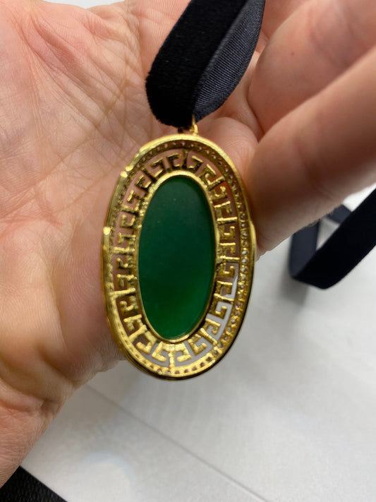 Vintage Green Jade Choker Gold Finish Necklace Pendant