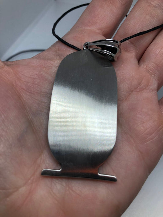 Vintage Handmade Silver Stainless Steel Gothic Egyptian God Horus Pendant Necklace