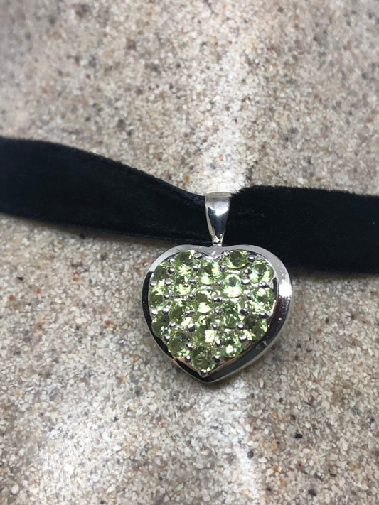 Vintage Green Peridot Choker 925 Sterling Silver Heart Pendant Necklace