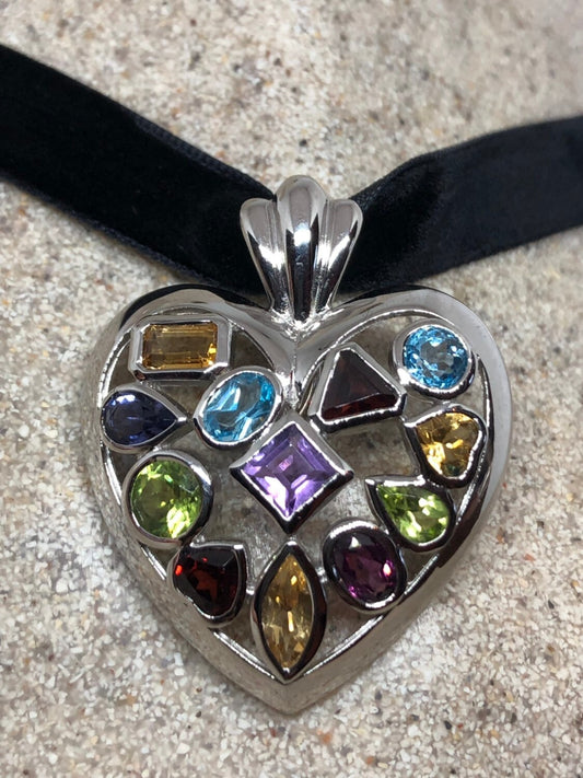 Vintage Handmade 925 Sterling Silver Genuine Gemstone Antique Heart Pendant Necklace