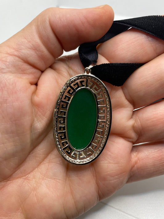 Vintage Green Jade Choker Silver Finish Necklace Pendant