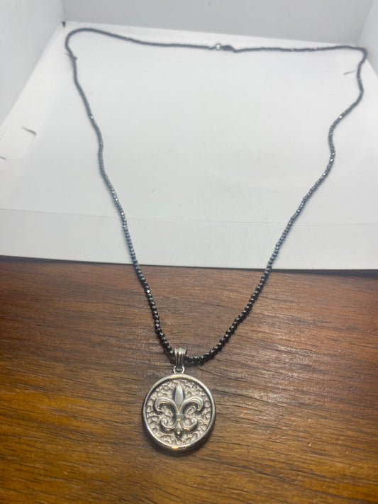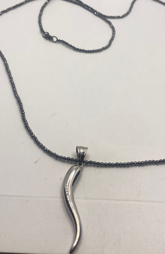 Vintage Faceted Hemetite beaded 30 inch Necklace