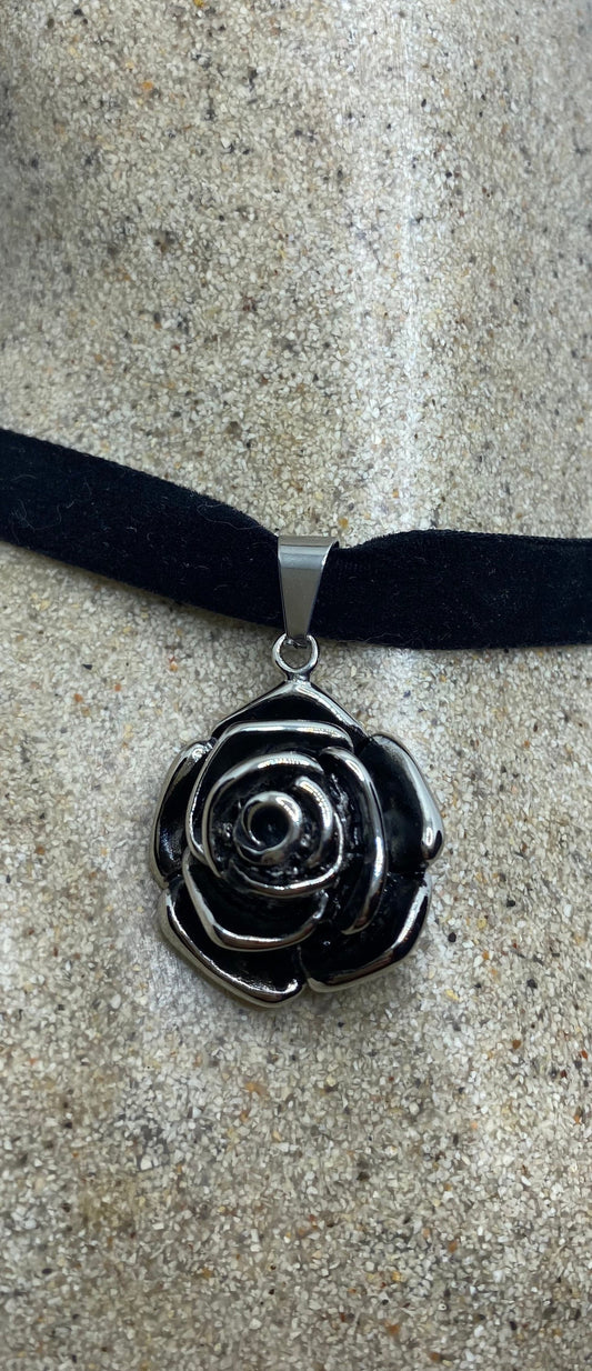 Vintage Rose Choker Silver Stainless Steel Pendant Necklace