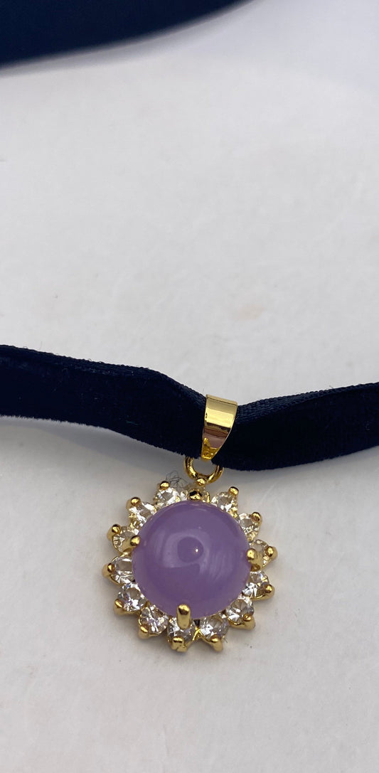 Vintage Lavender Jade Choker Golden Bronze Necklace Pendant