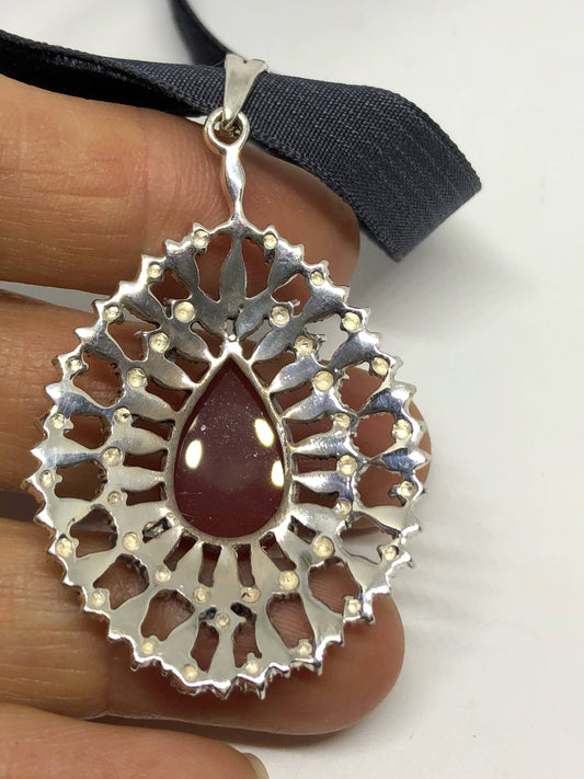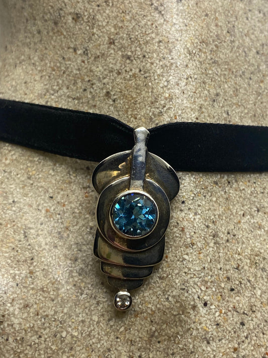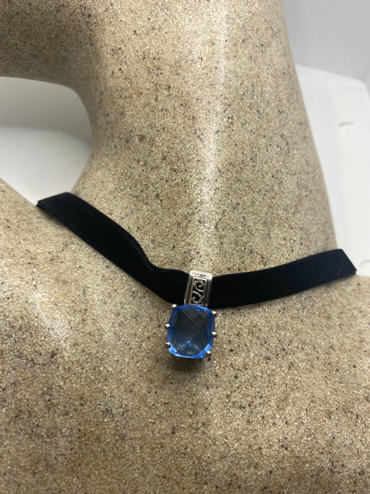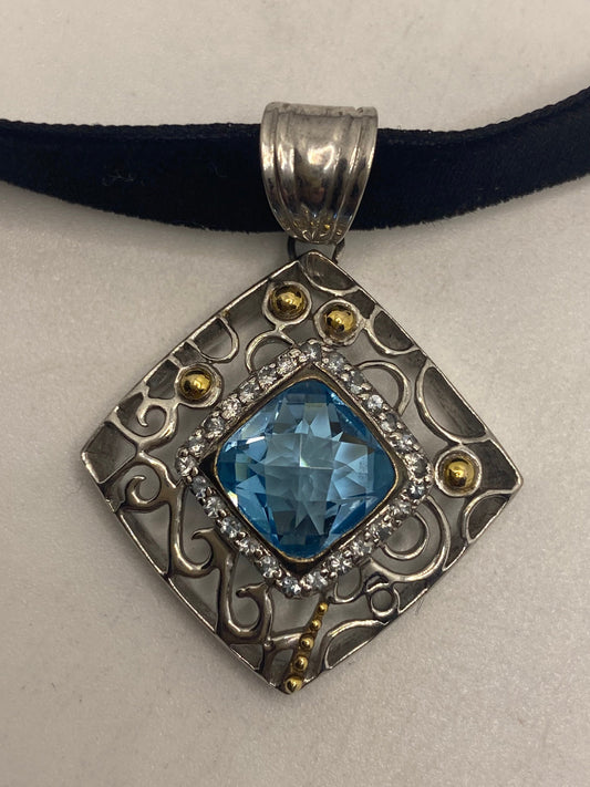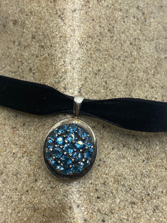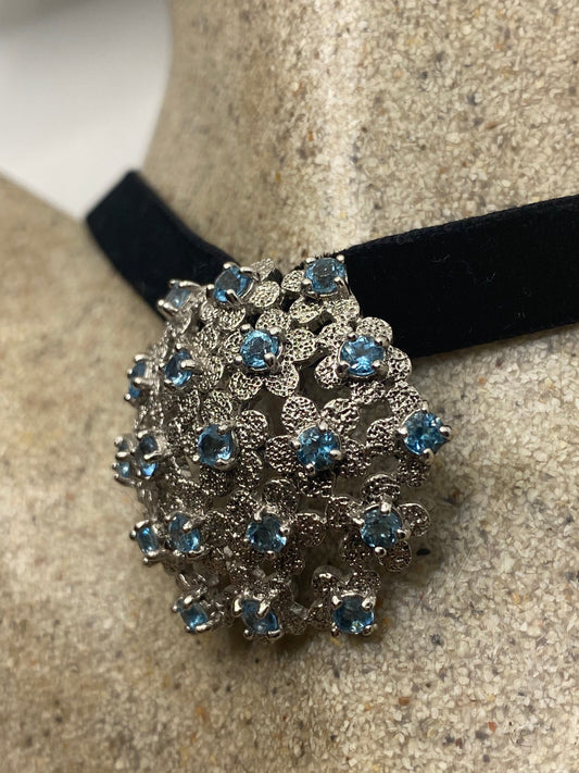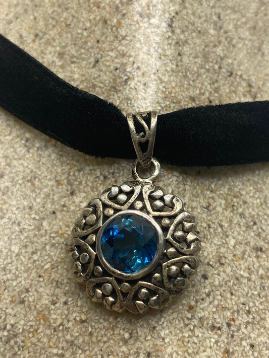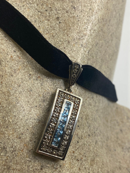 Vintage Blue Topaz 925 Sterling Silver Choker Necklace Pendant