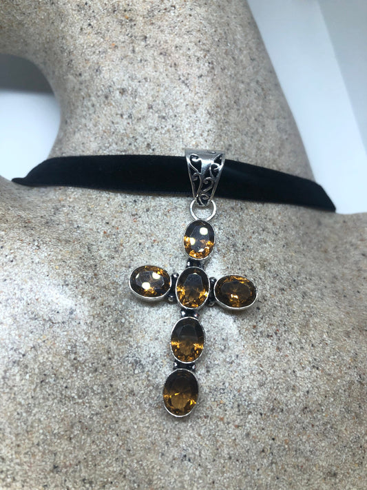 Vintage Golden Topaz cross Necklace Choker