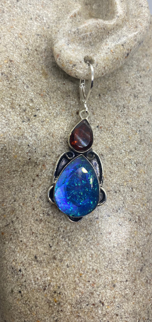 Antique Vintage Blue Pink Opal Glass Silver Dangle Earrings