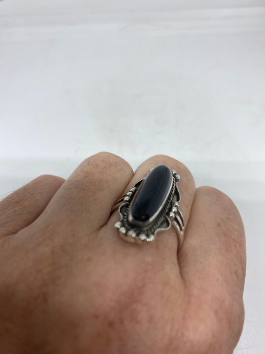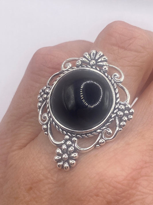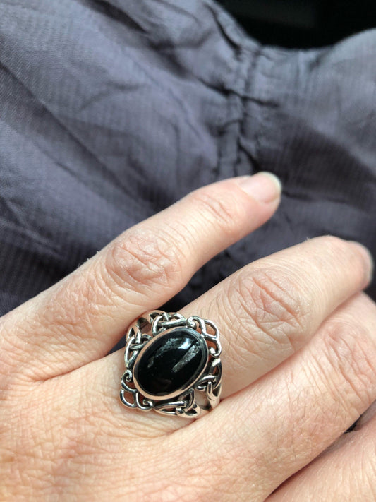 Vintage Celtic Genuine Black Onyx 925 Sterling Silver Ring