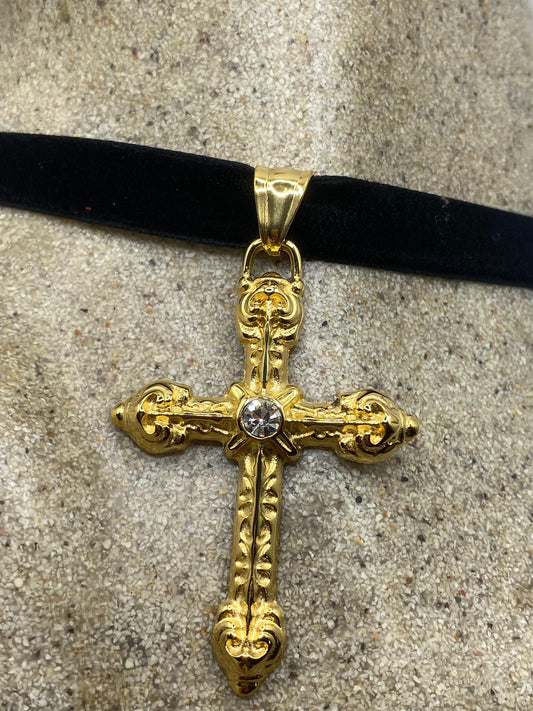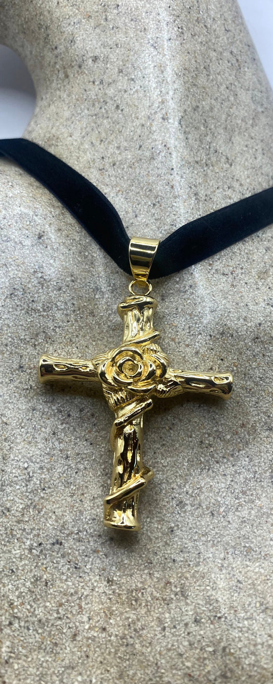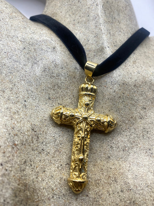 vintage Celtic Gold Stainless Steel Cross pendant necklace