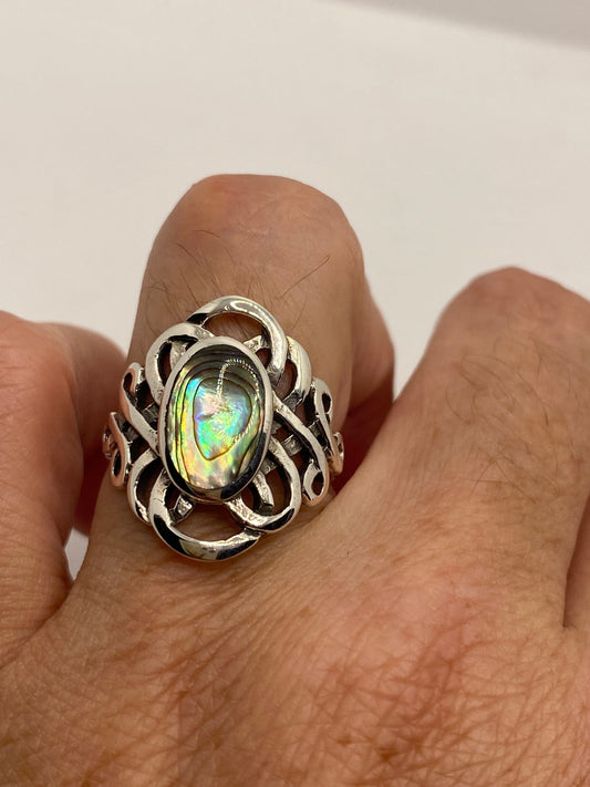 Vintage Celtic Knot Abalone Ring 925 Sterling Silver