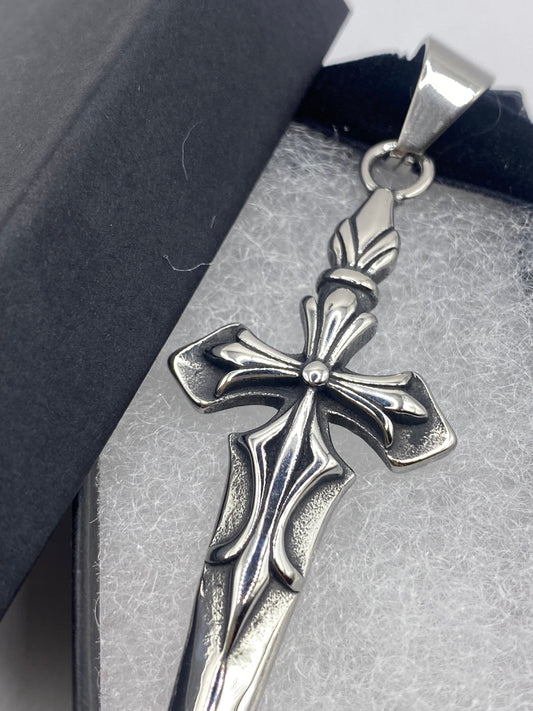 vintage Celtic Silver Stainless Steel Cross Dagger pendant necklace