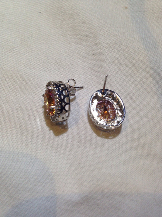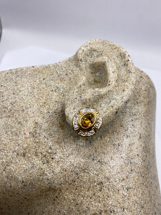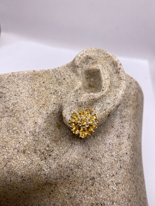 Vintage Citrine Earrings 925 Sterling Silver Deco Stud Button