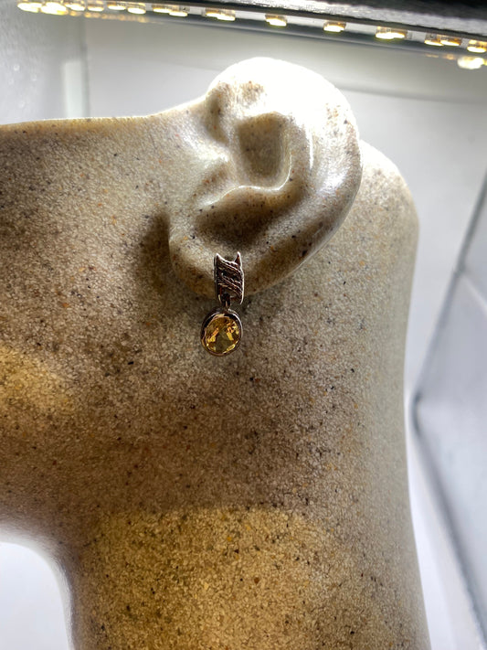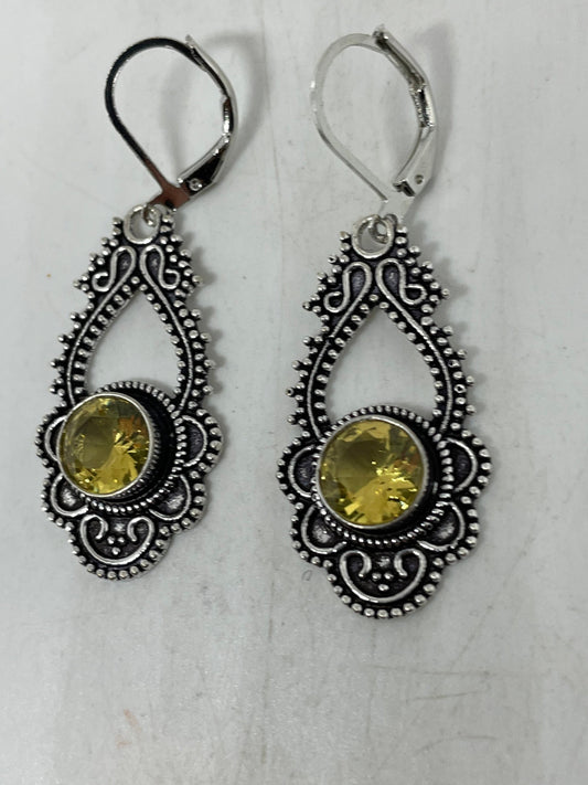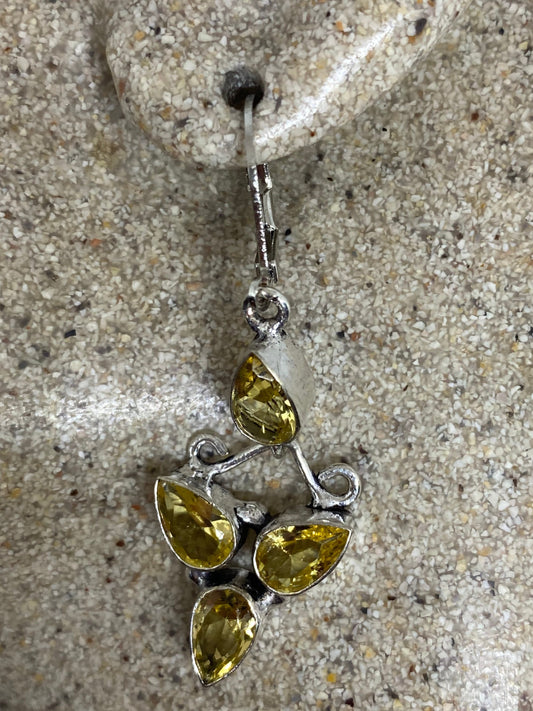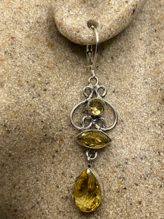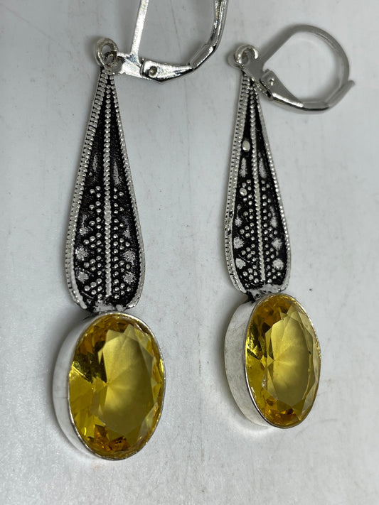 Vintage Citrine Earrings 925 Sterling Silver Drop Dangle