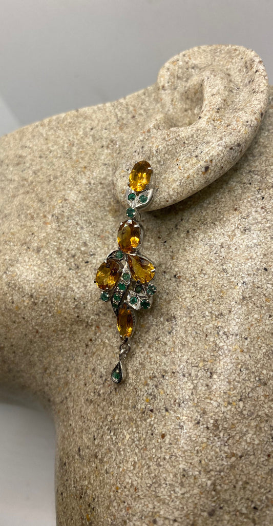 Vintage Citrine Emerald Earrings 925 Sterling Silver Deco