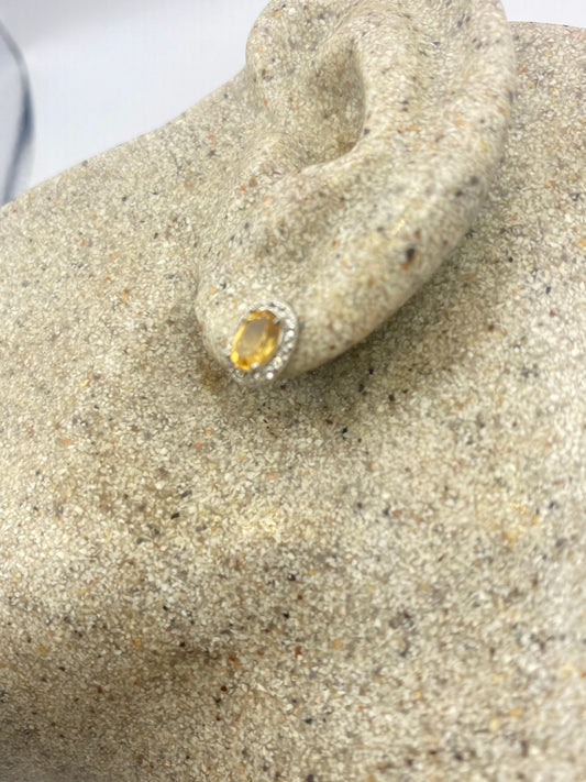 Vintage Citrine Earrings 925 Sterling Silver Stud