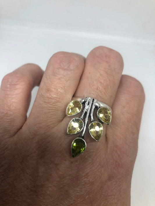 Vintage Citrine Peridot Filigree Silver Ring