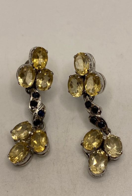Vintage Citrine Sapphire Earrings 925 Sterling Silver Deco