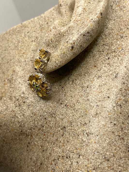 Vintage Citrine Peridot Flower Earrings 925 Sterling Silver Deco