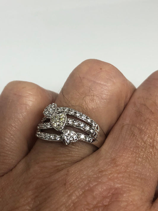 Vintage Clear White Sapphire 925 Sterling Silver Cocktail Heart Ring Size 7