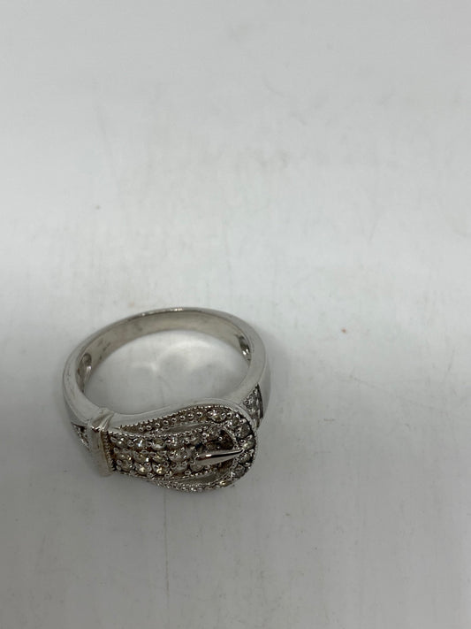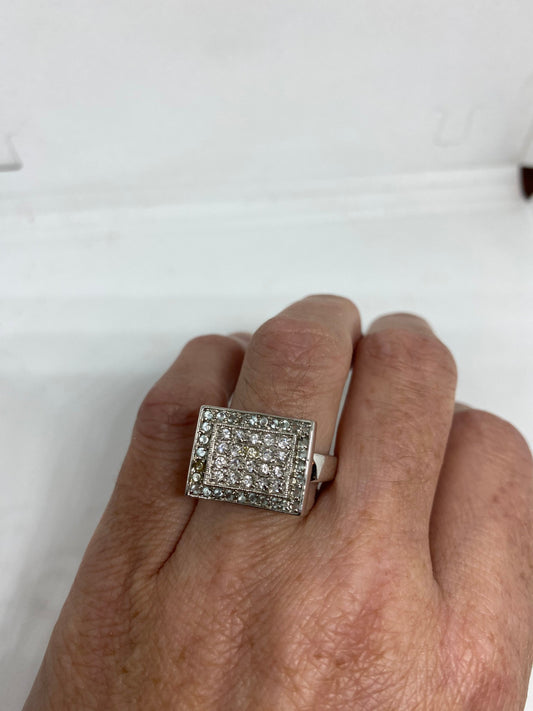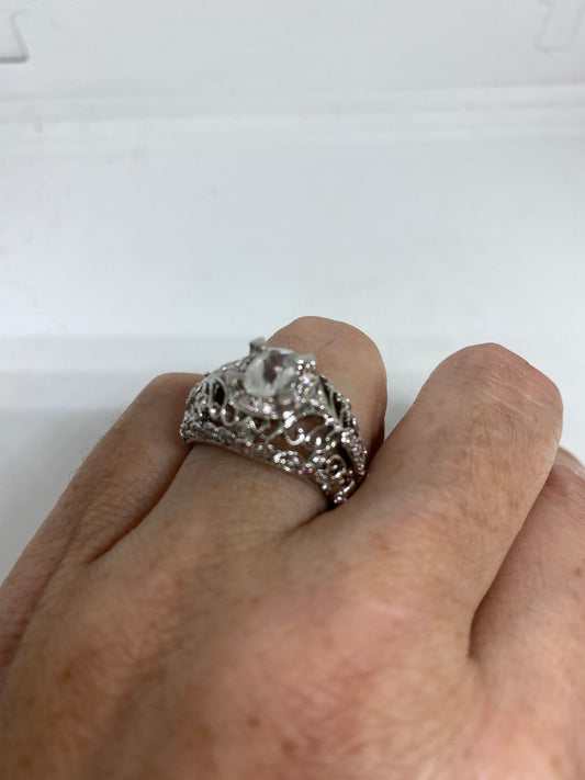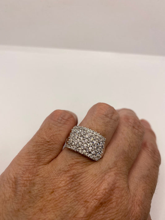 Vintage Clear White Sapphire 925 Sterling Silver Cocktail Ring Size 6