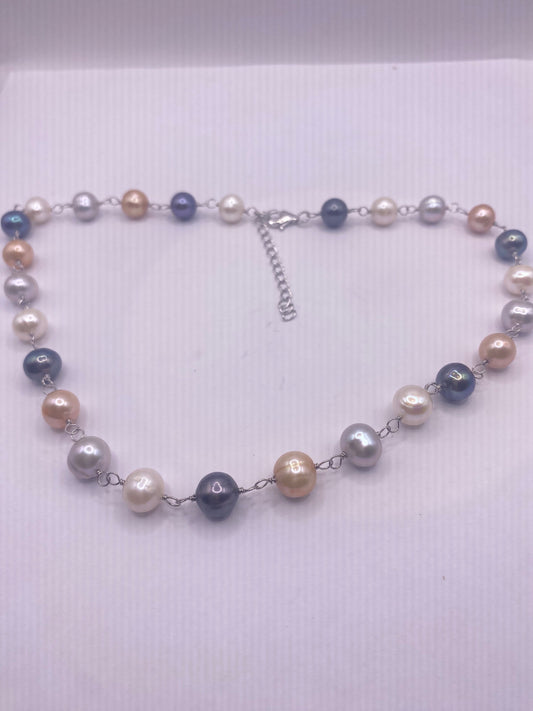 Vintage Cream Pink and black Pearl 16-18 in Necklace