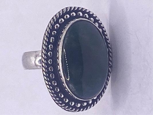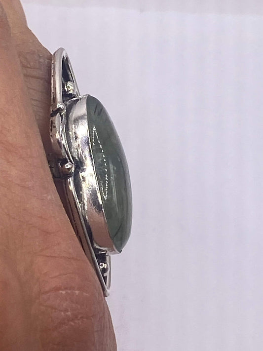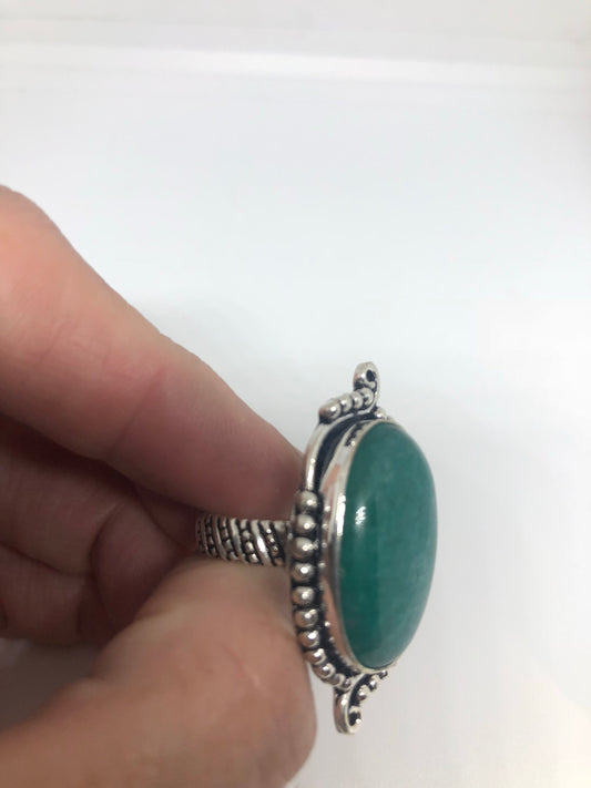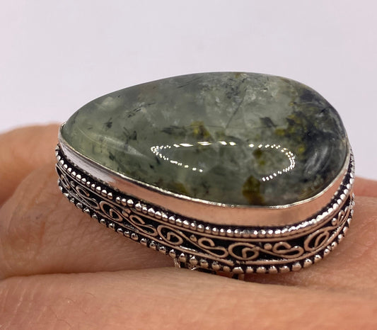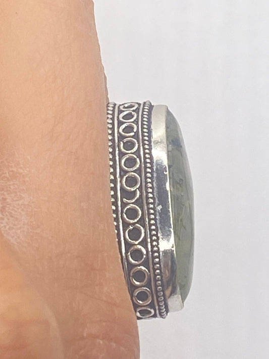 Vintage Green Nephrite Jade White Bronze Statement Ring