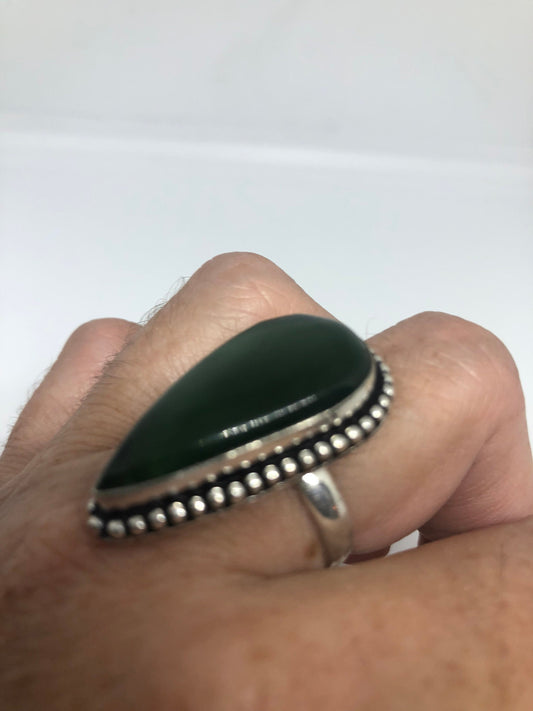 Vintage Green Nephrite Jade Ring About an Inch Long Knuckle Ring